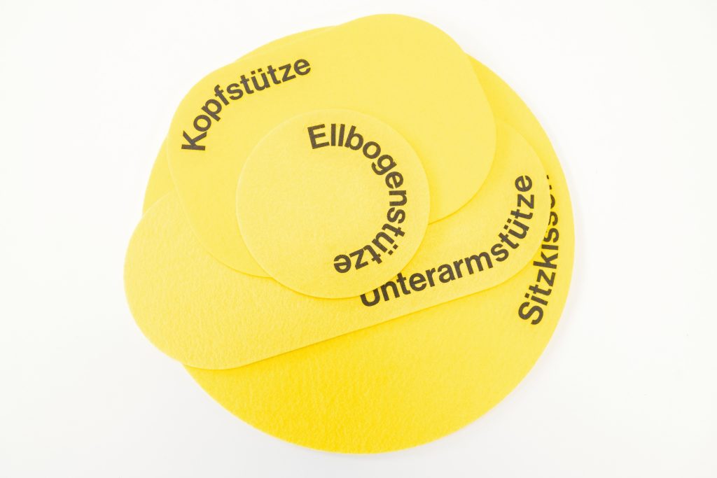 Legen Sie den Kopf auf eine der Filzstützen vor sich. Pause.