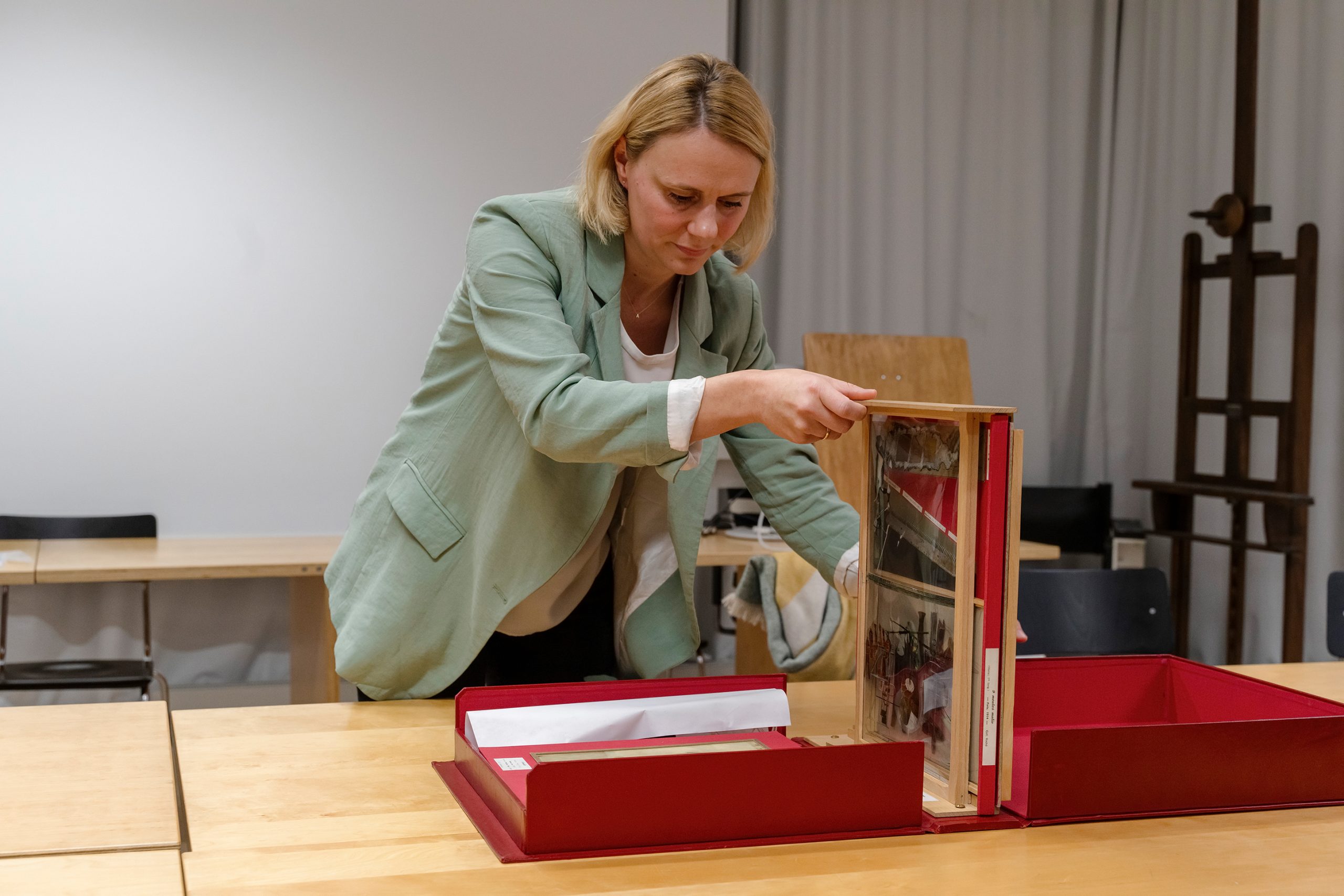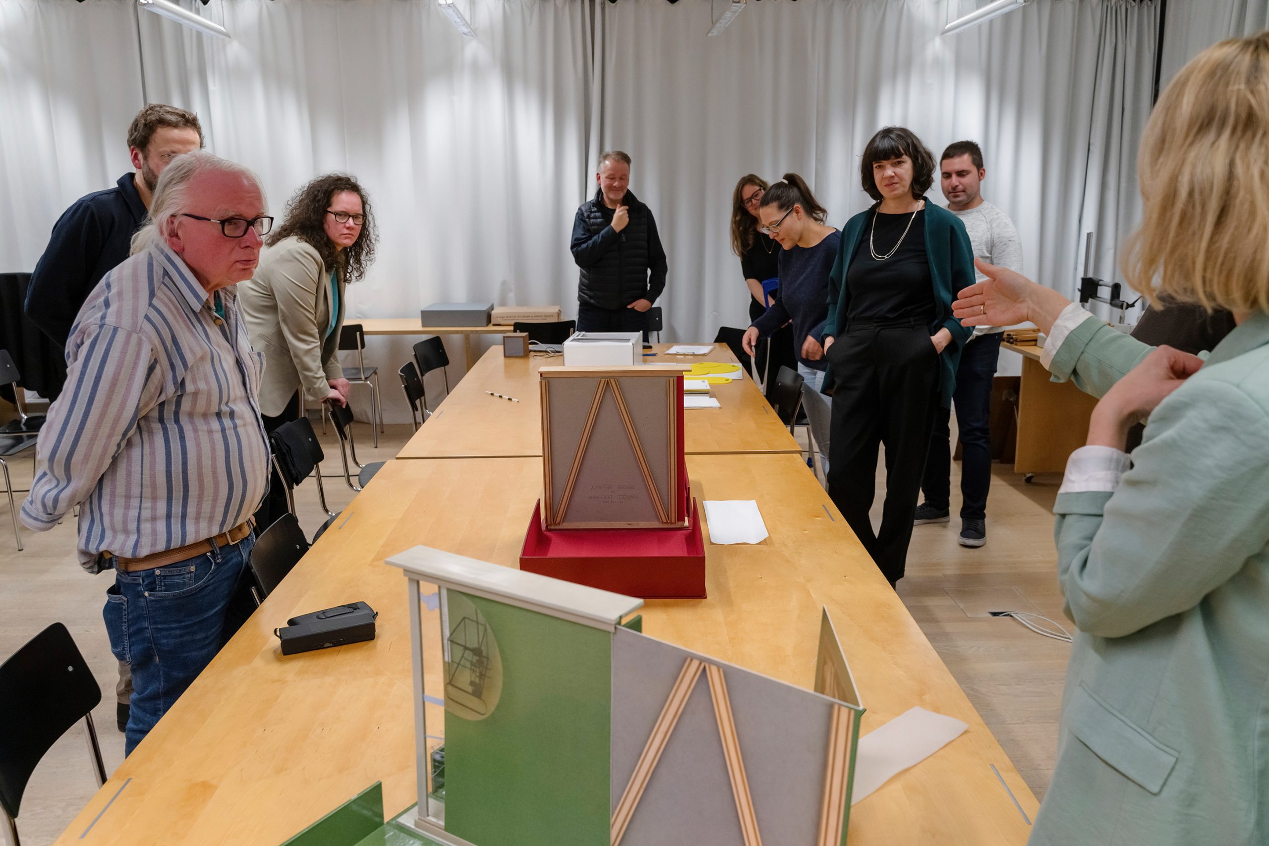 Am 16.11.2023 wurde erstmals ein Prototyp von ,Die Vorstellung‘, im Rahmen einer Sonderführung im Studiensaal der Graphischen Sammlung an der Staatsgalerie Stuttgart, präsentiert. In einem anschließenden Gespräch mit der Kuratorin Dr. Susanne Kaufmann-Valet sprechen Melanie Mohren und Bernhard Herbordt über ihre künstlerischen Ideen und Fragestellungen im Kontext von Institutionen.