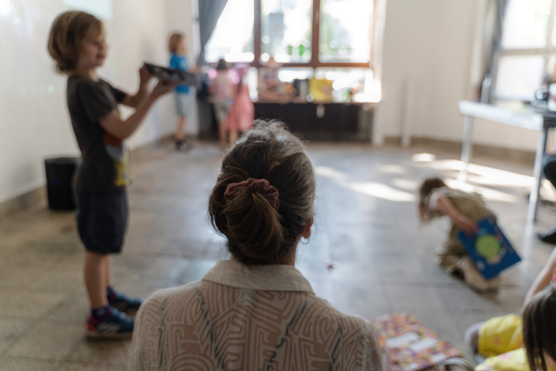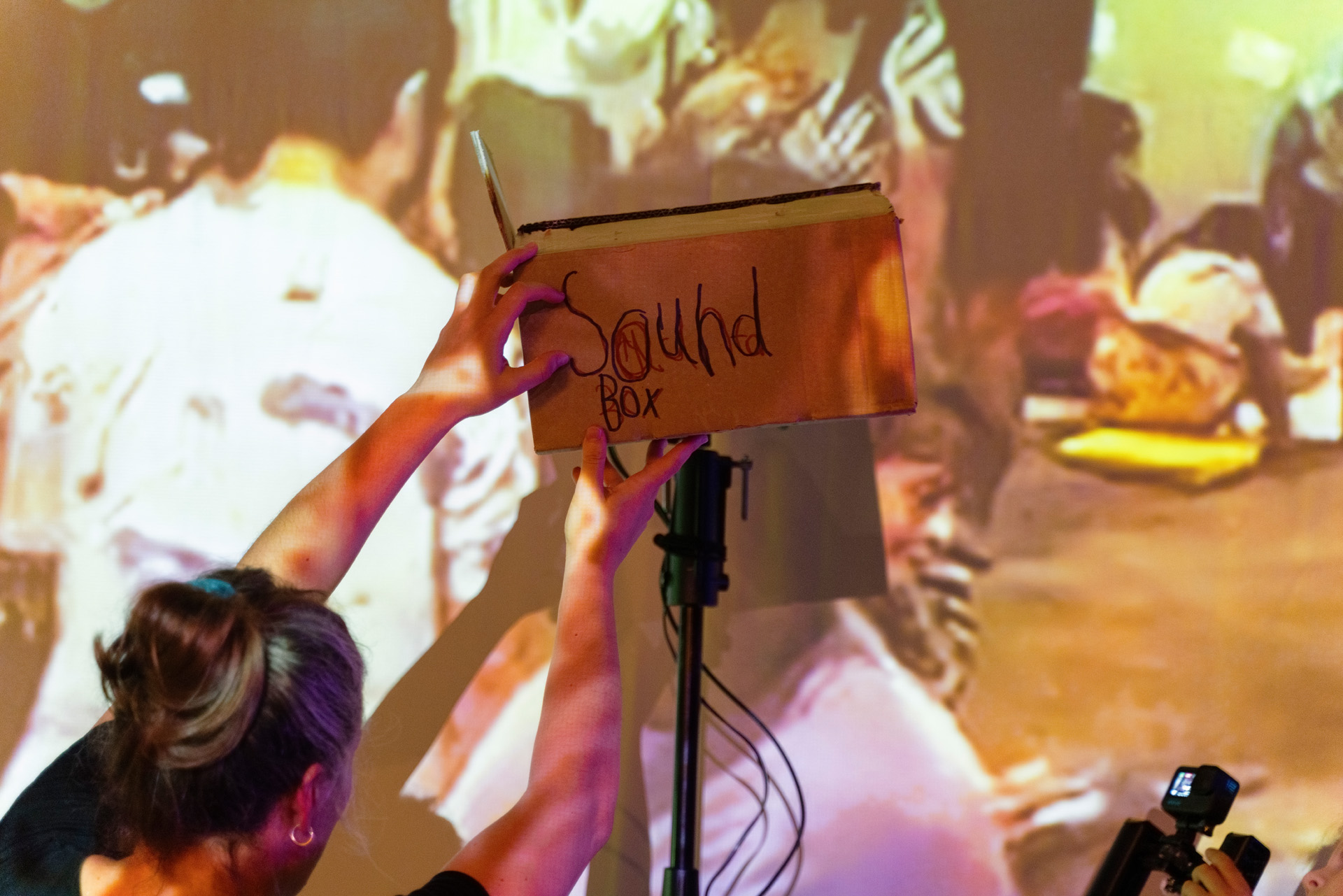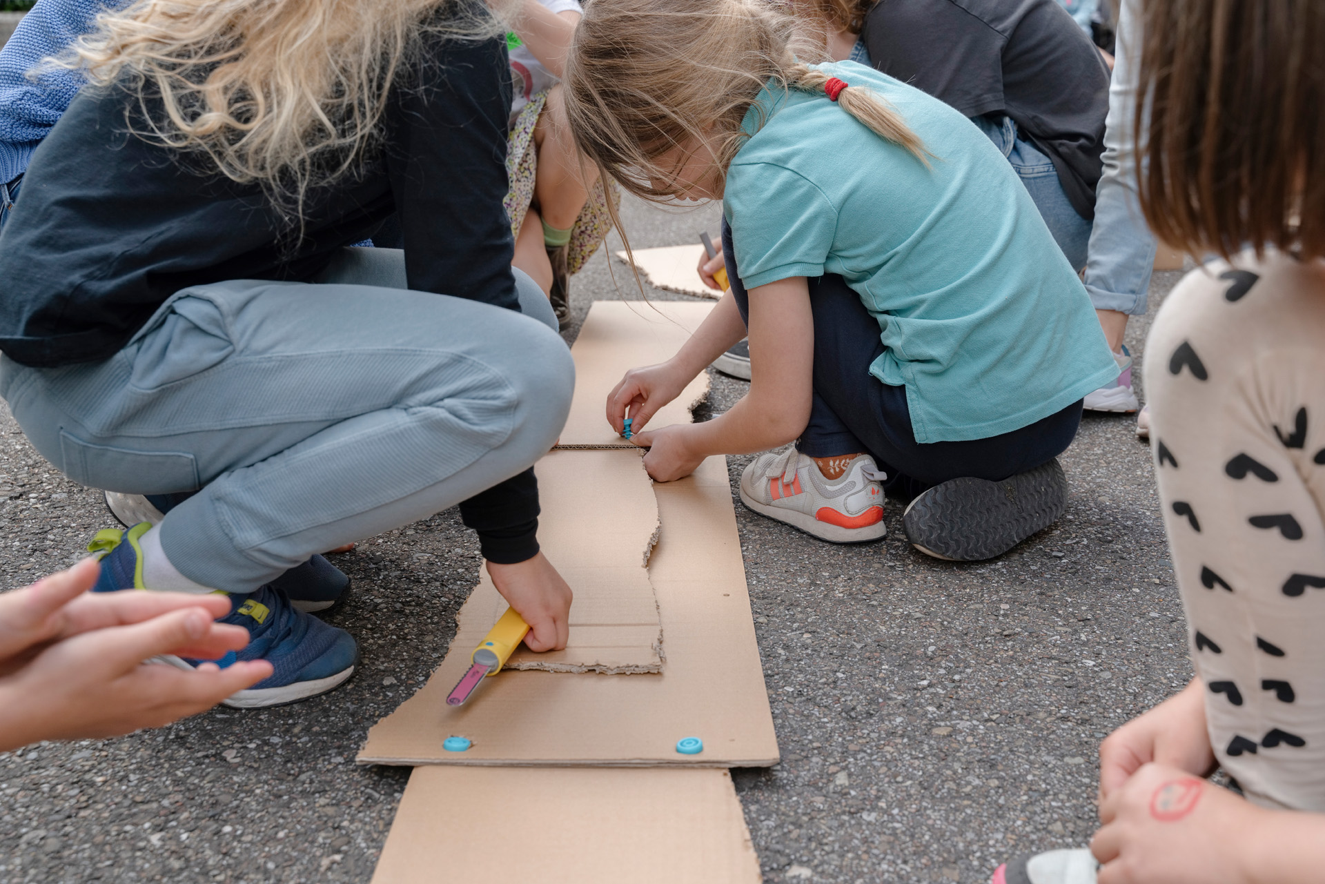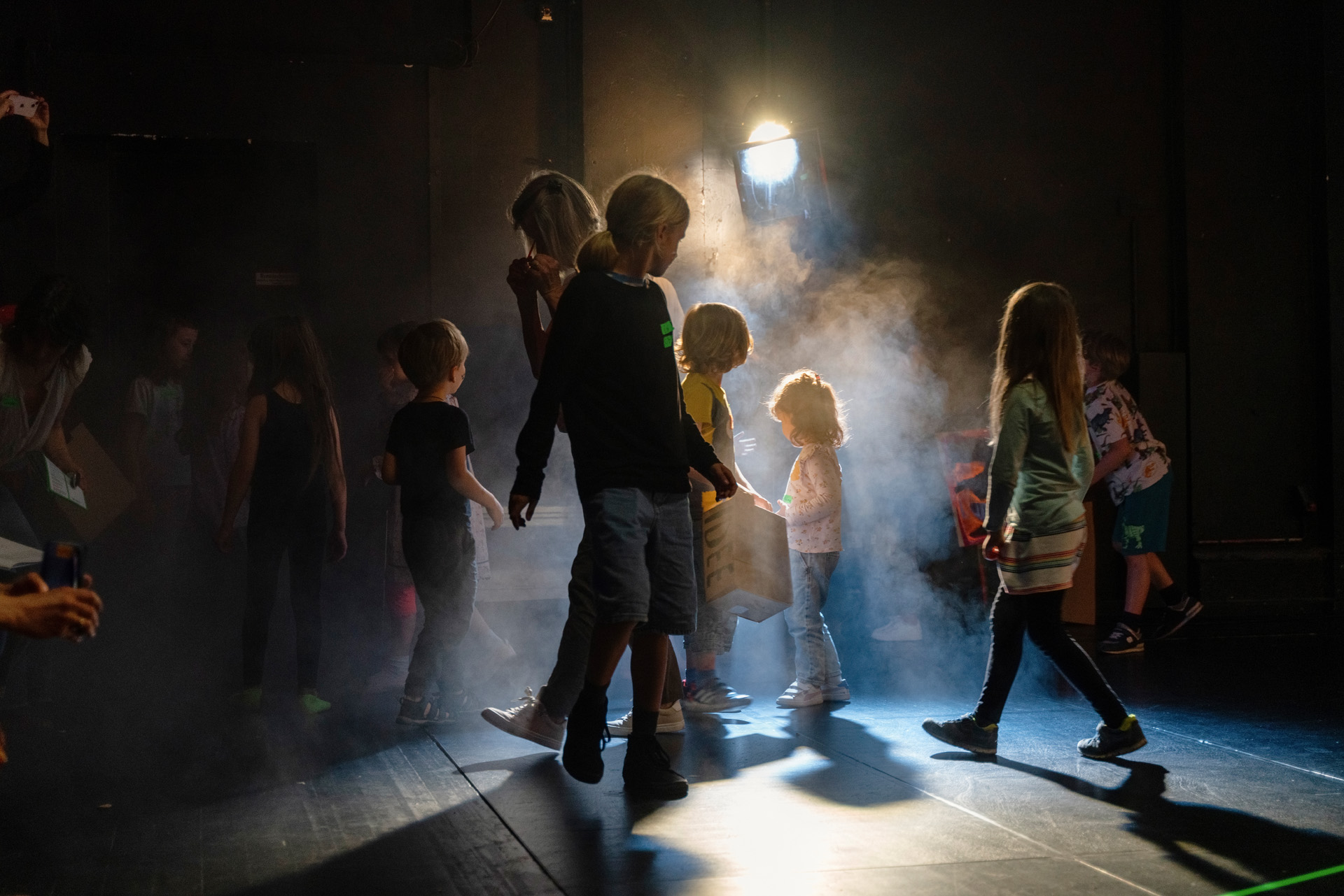 Beteiligte Kinder realisieren mit einer eigens für das Projekt erfundenen Technik kollaborativen Schreibens Skript, Bühne, Raum und Musik der Performance selbst. Live on stage, mit wechselnden Gäst:innen und dem Publikum.